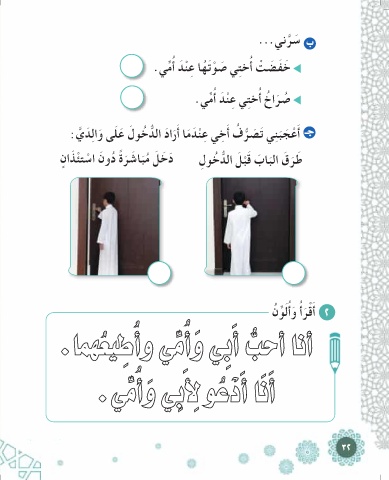 :` َأ ْﻋ َﺠ َﺒ ِﻨﻲ َﺗ َﺼ ﱡﺮ ُف َأ ِﺧﻲ ِﻋ ْﻨ َﺪ َﻣﺎ َأ َرا َد اﻟ ﱡﺪ ُﺧﻮ َل َﻋ َﻠﻰ َوا ِﻟ َﺪ ﱠيL