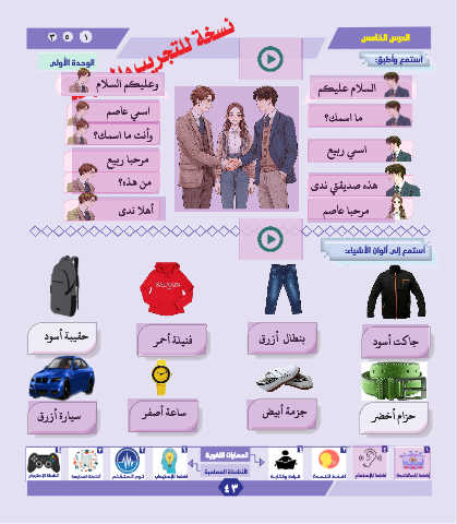 انشطة الإسترجاع أنشطة الممارسة تـوم الـمـتـكـلـم اضغط للإستيعاب الأنشطة المصاحبة4 3 قـراءة وكـتـابـة إضغط للمشاهدة اضغط للإستماع اضـغـط للـتـحـدث