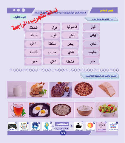 النشاط ليس قرائيا وإنما يتدرب الطلبة على شكل الكلمات