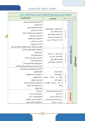 مصفوفة الدروس والمواضيع والأنشطة المستوى المبتدئ/الكتاب( أدنى).