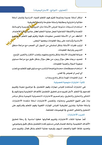 • ابتكار أسئلة جديدة ومتنوعة تقيّم فهم المتعلم للمواد الدراسية وتشمل أسئلة
