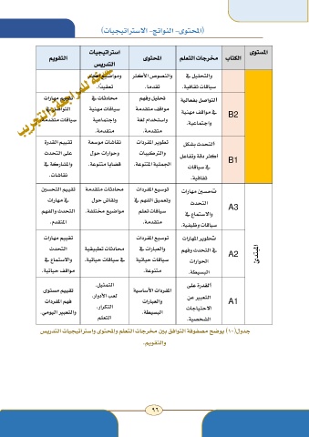 التقويم استراتيجيات المحتوى المستوى الكتاب مخرجات التعلم